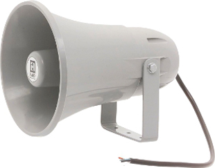 Preiswerter, großer Druckkammerlautsprecher mit sehr hohem Wirkungsgrad für Sprachdurchsagen und zur Alarmierung im Innen- und Außenbereich, z.B. in Produktionsstätten, Tiefgaragen, .... Der TL 330 ist mit einem herkömmlichen Treiber bestückt. Daraus resultiert ein hoher Wirkungsgrad. Die Montage erfolgt über einen im Lieferumfang beinhalteten U-Bügel. Er kann auch mit der optionalen Mastbefestigung MB 1/2 an einem Masten befestigt werden.