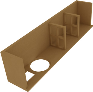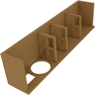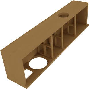 Das Bassreflexrohr beim Cherlen besteht aus zwei gekürzten und zusammengesetzten HP70. Die HP70 werden ab der Vorderkante vom Trompetenflansch auf 100 mm gekürzt. Das innere Rohr wird durch die Öffnung durchgesteckt und das herausragende Ende wird mit Klebeband an das äußere Rohr geklebt. Beide Schnittkanten bei den HP100 sollten gerade sein, damit eine leichte Montage möglich ist.