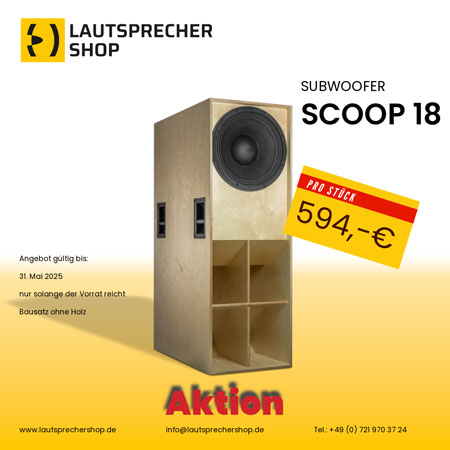 Scoop 18 ist ein vielseitiger Subwoofer, der ihre Lautsprecher mit einem leistungsfähigen und tiefen Bass unterstützt.