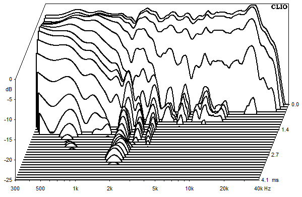 Die nichtlinearen Verzerrungen bei geringen Lautstärken (85 dB, 1 m) liegen oberhalb von 600 Hz unter 0,6 % und bleiben auch bei höheren Pegeln (95 dB, 1 m) im hörbaren Bereich unter 1,1 %.