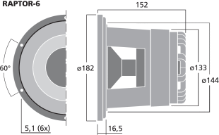 Boomer de 16 cm avec une membrane en céramique. Le chassis est fabriqué par injection. L'aimant est ventilé pour éviter tout effet de compression.