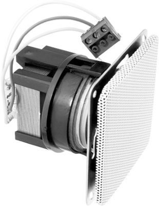 Lautsprecher geeignet für Sprache und Hintergrundmusik in z.B. Büros, Wohnhäusern, Hotelbädern, Der KEL ... UP T bietet einen für seine Größe erstaunlichen Sound. Er ist mit einem 50 mm-Breitbandlautsprecher und einem rückseitig angebrachten 100V-Übertrager bestückt. Die Metalltragplatte wird an einer Standard-Unterputzdose mit Tiefe von 63 mm angeschraubt. Das im Lieferumfang enthaltene Gitter in den Farben weiß, anthrazit oder silber wird auf die Metalltragplatte aufgesteckt und befestigt dadurch den Schalterrahmen. Dieser ist im Elektro-Fachgroßhandel erhältlich. Genaue Bestellbezeichnung in Abhängigkeit des Schalterprogramms siehe Tabelle am Ende des Kapitels Audioelektronik.