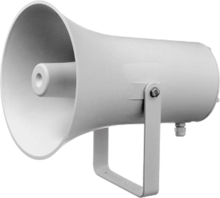 Preiswerter, großer Druckkammerlautsprecher mit sehr hohem Wirkungsgrad für Sprachdurchsagen und zur Alarmierung im Innen- und Außenbereich, z.B. in Produktionsstätten, Tiefgaragen, .... Der TL 330 ist mit einem herkömmlichen Treiber bestückt. Daraus resultiert ein hoher Wirkungsgrad. Die Montage erfolgt über einen im Lieferumfang beinhalteten U-Bügel. Er kann auch mit der optionalen Mastbefestigung MB 1/2 an einem Masten befestigt werden.