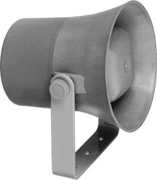 Kleiner, preiswerter Druckkammerlautsprecher mit hohem Wirkungsgrad für Sprachdurchsagen und zur Alarmierung im Innen- und Außenbereich, z.B. in Produktionsstätten, Tiefgaragen, .... Der TL 310 ist mit einem herkömmlichen Treiber bestückt. Daraus resultiert ein hoher Wirkungsgrad. Die Montage erfolgt über einen im Lieferumfang beinhalteten U-Bügel. Er kann auch mit der optionalen Mastbefestigung MB 1/2 an einem Masten befestigt werden.