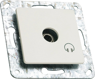 Kopfhörerbuchse. Bei eingestecktem Kopfhörer (6,3mm Stereo-Klinke) werden die Lautsprecher dieser Hörzone stummgeschaltet. Der Anschluß erfolgt am DAM IR-Tastmodul. Das DAM HP wird mit einer bedruckten 50 mm-Zentralplatte in Farbe reinweiß matt ausgeliefert und passt mit im Elektro-Fachgroßhandel erhältlichen Adapterrahmen zu nahezu allen gängigen Schalterprogrammen.