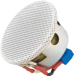 Vergrößern Kardan-Lautsprecher, ideal für die Wiedergabe von Sprache und Hintergrundmusik in niederen Räumen (2,4...4 m) z.B. in Shops/Boutiquen, Wohnhäusern, ... Der KLS 111 passt in alle Kardanstrahler, die für ein Leuchtmittel mit Durchmesser 111 mm konstruiert sind. Somit kann Licht und Ton optimal kombiniert werden, wodurch ein einheitlicher Deckenspiegel entsteht. Er ist mit einem 87 mm-Breitbandchassis mit Hochtonkegel und Neodymmagnet bestückt. Dadurch entsteht ein breites Abstrahlverhalten, so dass mit wenigen Lautsprechern dieses Typs eine große Fläche gleichmäßig beschallt werden kann. Zur Unterstützung im Bassbereich empfehlen wir den Subwoofer UP 14 SUB.