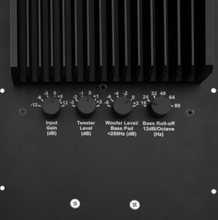 Wie man in der linken Abbildung sehen kann, haben wir bei der Aktivelektronik für die Donau Einstellmöglichkeiten für den Hochtöner und den Bass. Auch die untere Trennfrequenz für den Bass kann man einstellen. Dieser Bass Roll-off ist wichtig für die Ankopplung von einem Subwoofer oder für die Anpassung an einen kleinen Raum. In dem Verstärker ist kein DSP. Es wird also das analoge Signal im Verstärker analog verarbeitet. Mit dieser analogen Technik kann man auch einen hochwertigen D/A Wandler als Quelle verwenden und man hat keine Verluste durch zusätzliche Wandlungen.