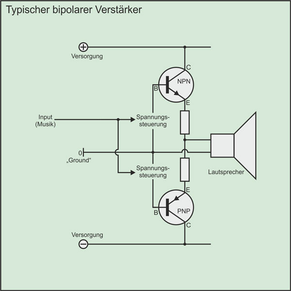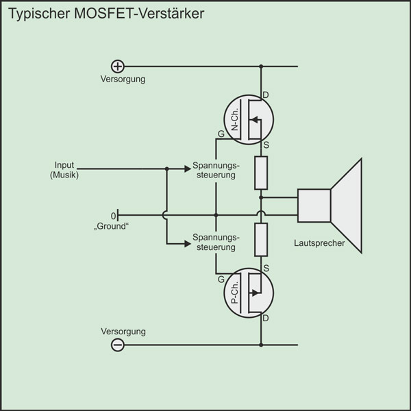 Bei herkömmlichen Verstärkern mit Feldeffekttransistoren hängt die Last, also der Lautsprecher bzw. das Chassis, am Source-Anschluss. Da Fehlerströme und -spannungen aber damit auch auf den Source-Anschluss wirken, wird die Steuerung, die ja zwischen Source und Gate erfolgt, durch die Last beeinflusst.