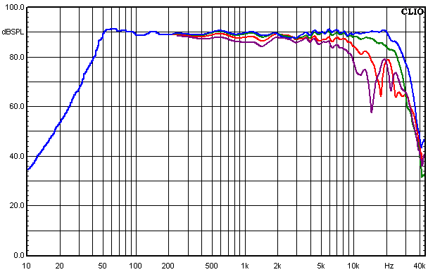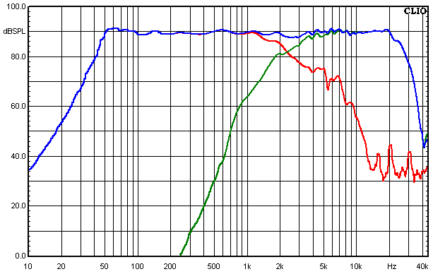 • Blau = Summe aus Hochtöner und Tieftöner auf Achse gemessen
