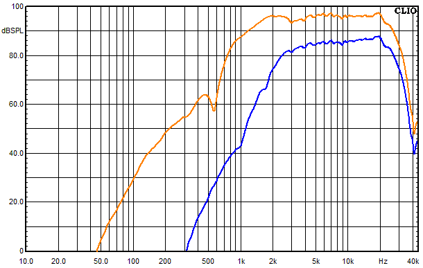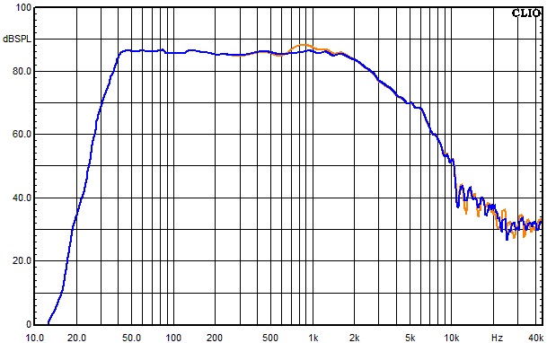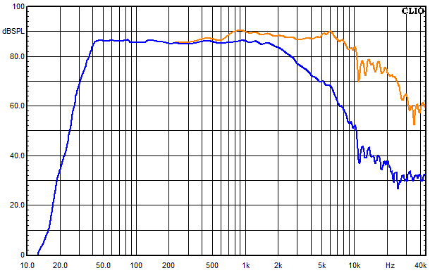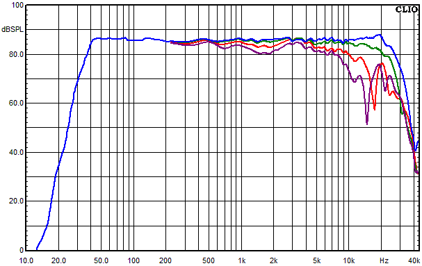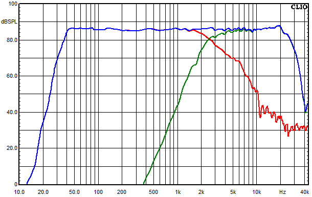 - Blau = Summe aus Hochtöner, Mitteltöner und Tieftöner auf Achse gemessen
