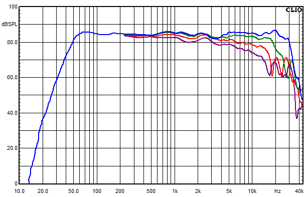 • Blau = Summe aus Hochtöner, Mitteltöner und Tieftöner auf Achse gemessen