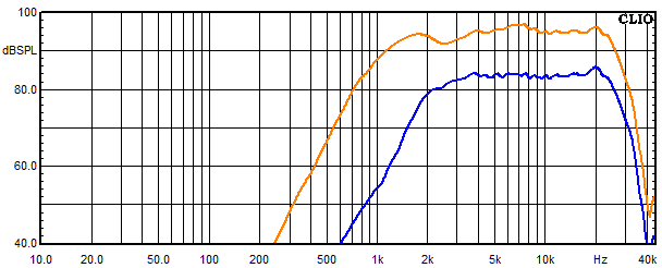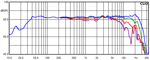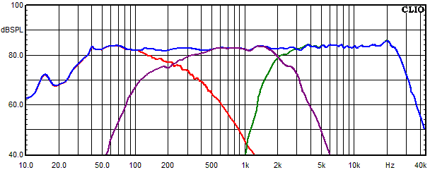 - bleu = somme du tweeter, du midi et du woofer mesurée sur l'axe.