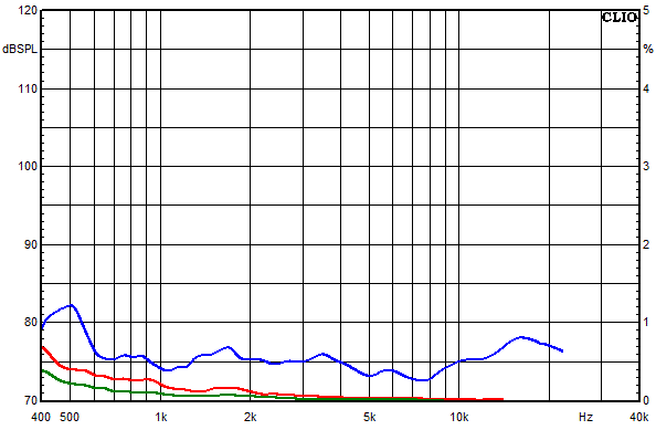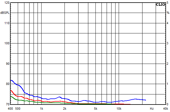 Respuesta de frecuencia del factor de distorsión a un nivel de presión sonora medio de 95 dB
