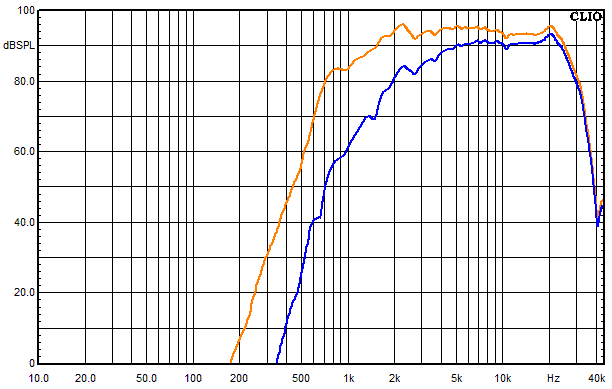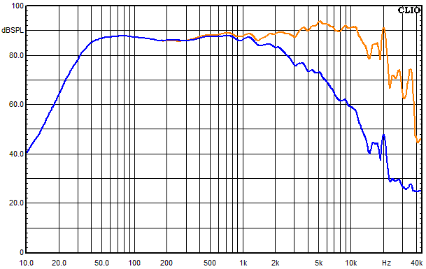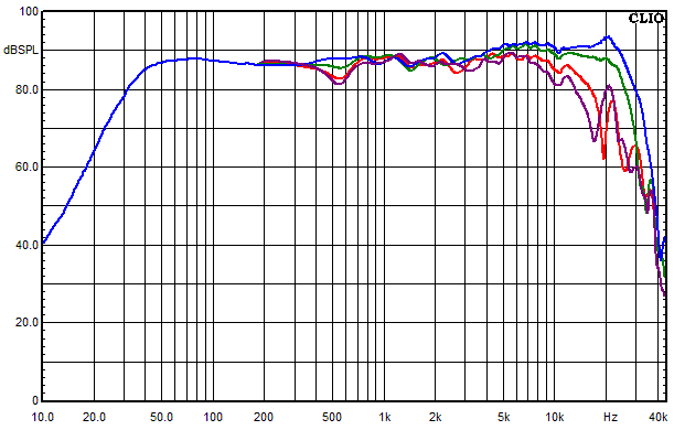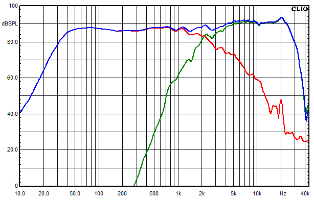 - Blau = Summe aus Hochtöner, Mitteltöner und Tieftöner auf Achse gemessen