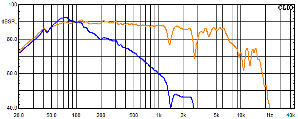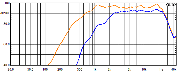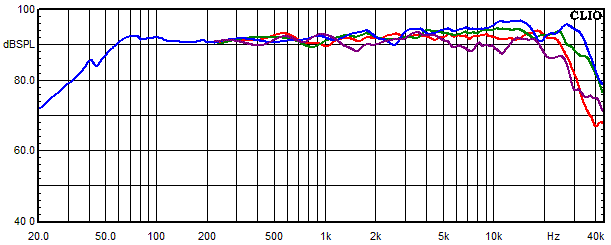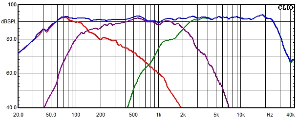- Blau = Summe aus Hochtöner, Mitteltöner und Tieftöner auf Achse gemessen