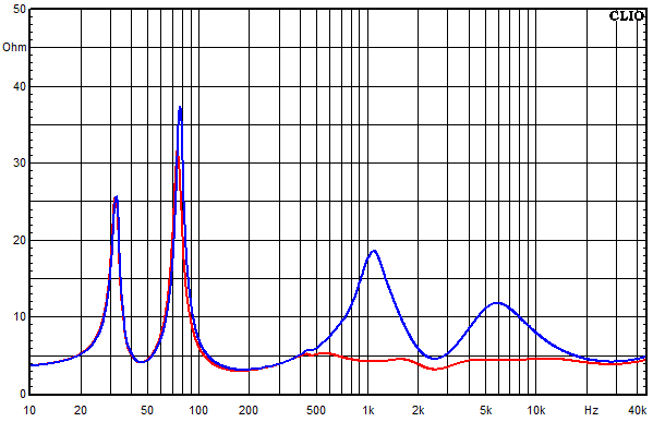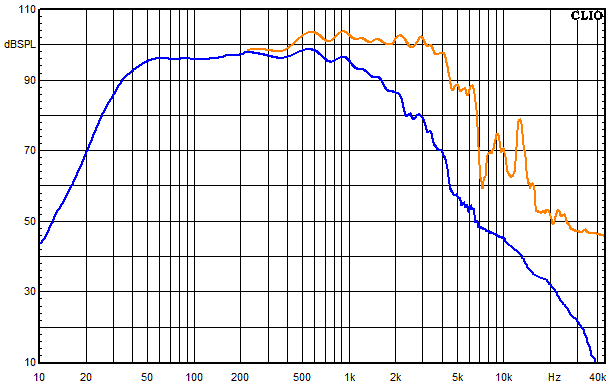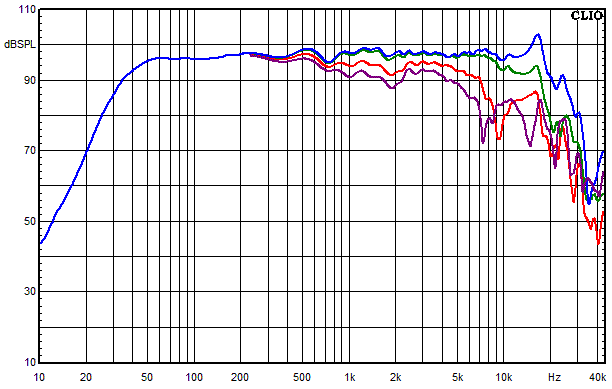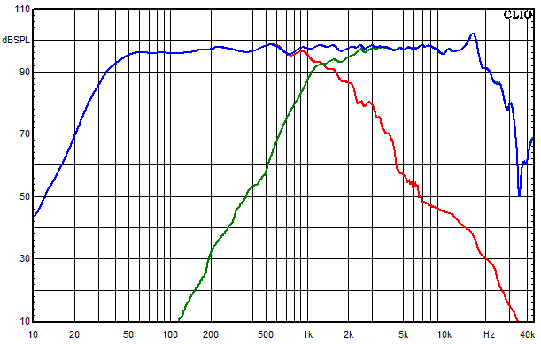 - Blau = Summe aus Hochtöner, Mitteltöner und Tieftöner auf Achse gemessen