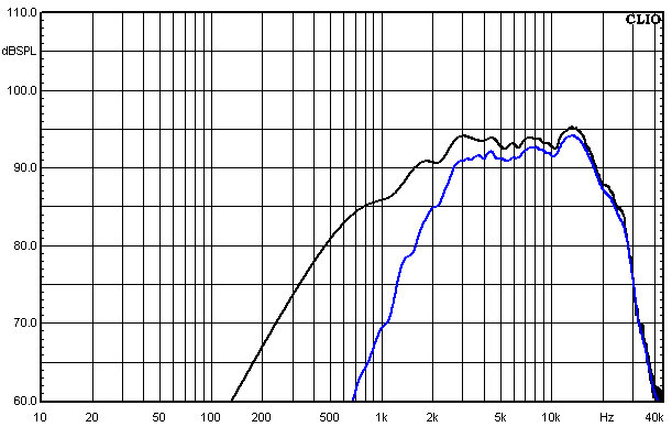 - Blau = Summe aus Hochtöner und Tieftöner auf Achse gemessen