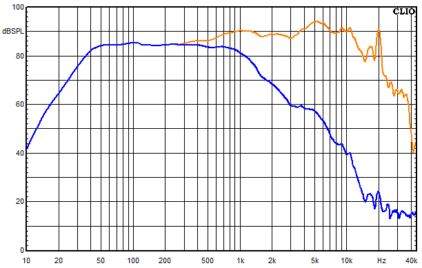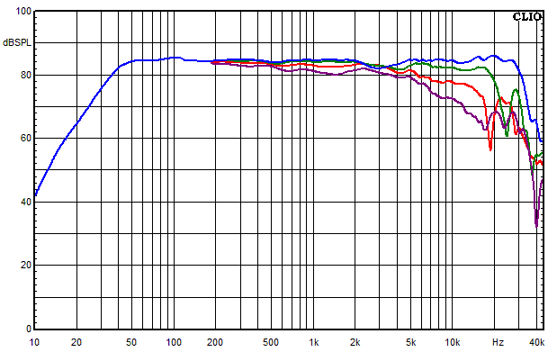- Blau = Summe aus Hochtöner, Mitteltöner und Tieftöner auf Achse gemessen