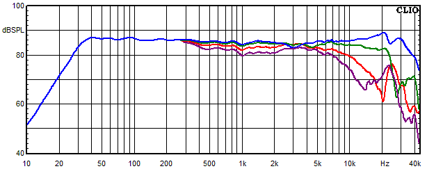 - Blau = Summe aus Hochtöner, Mitteltöner und Tieftöner auf Achse gemessen