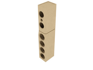 Die Lautsprecher wurden von Daniel Gattig anlässlich einer Hochzeit entwickelt; Raquel und Marco besteht aus Unterteil und Topteil, die zusammen einen stattlichen Standlautsprecher bilden.