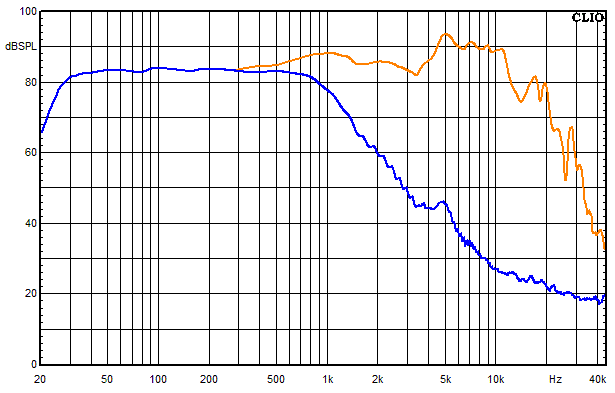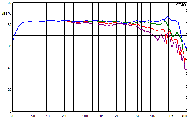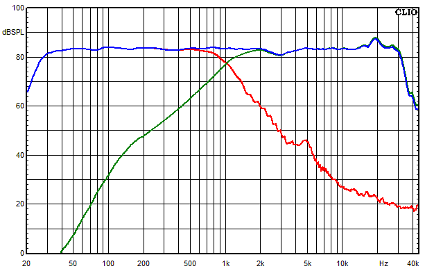 - Blau = Summe aus Hochtöner, Mitteltöner und Tieftöner auf Achse gemessen