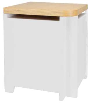 Sonic MK2 ist ein schmucker Beistelltisch mit Multiplexplatte und weißem Korpus, der durch seinen nach unten abstrahlenden Subwoofer weniger als Lautsprecher auffällt. Einzig das Verstärkermodul, das auf einer Seite angebracht ist, entlarvt ihn als Subwoofer.
