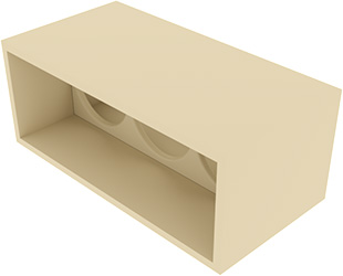 In dem Beispiel ist die Rückwand mit dem Ausschnitt für ein VP102 (Verstärker für Aktivlautsprecher) abgebildet. Den Bausatz können Sie für die aktive und passive Version bekommen.