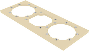 In der Abbildung ist die Rückseite der Front zu sehen. Die Einschlagmuttern in die Rückseite der Front einpressen.