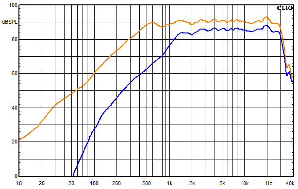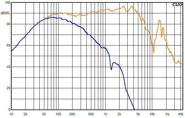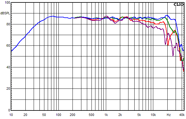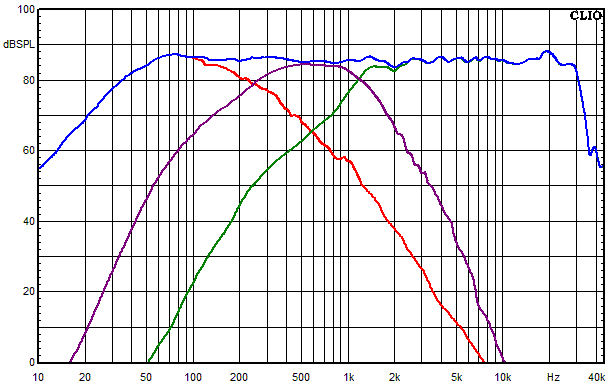 - Blau = Summe aus Hochtöner, Mitteltöner und Tieftöner auf Achse gemessen