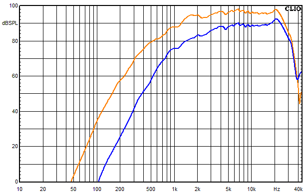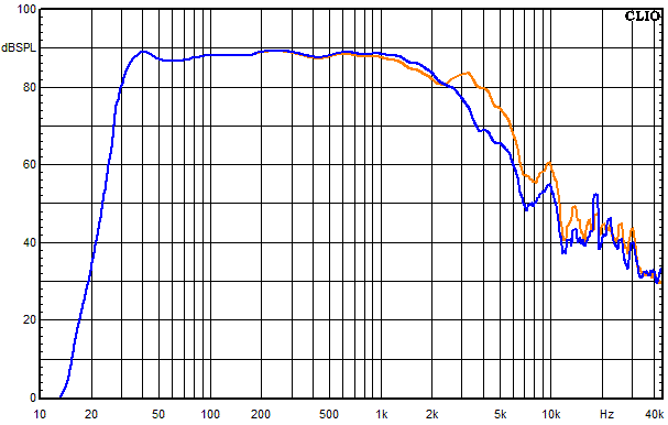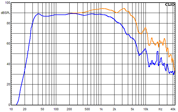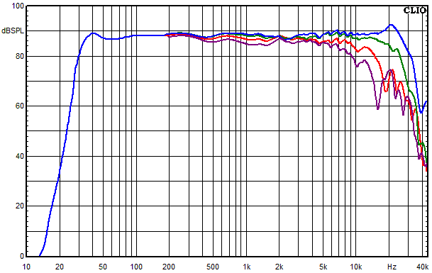 - Blau = Summe aus Hochtöner, Mitteltöner und Tieftöner auf Achse gemessen