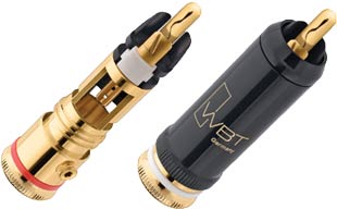 When combined with WBT RCA sockets, the contacts are positioned in such a way that the outer conductor is in contact before the inner conductor, thereby preventing undesirable or even harmful voltage peaks.