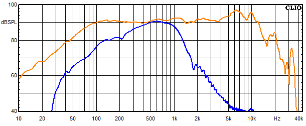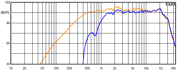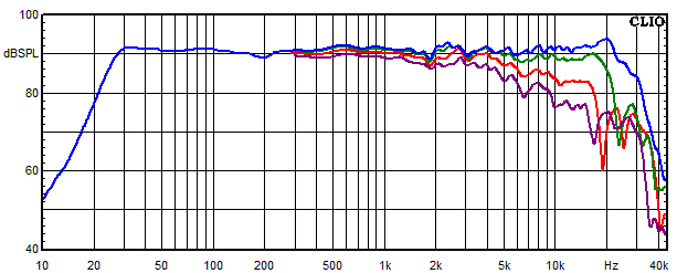 - bleu = somme du tweeter, du midi et du woofer mesurée sur l'axe.