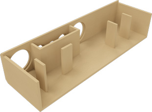 Bitte messen Sie immer alle Teile beim Einbauen nach. Auch die Dicke von einer MDF-Platte kann um 10 % abweichen. In Zahlen bedeutet das, dass eine 19 mm-Platte fast 21 mm stark sein kann. Bei zwei Seitenteilen ergibt das eine Toleranz von 4 mm. Damit Tieftöner und Hochtöner zum Schluss auch mittig in der Box liegen, ist ein genaues Positionieren der Einzelteile dringend erforderlich.