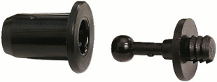 Prise et fiche en ABS noir pour fixation d'un cadre de tissu démontable.