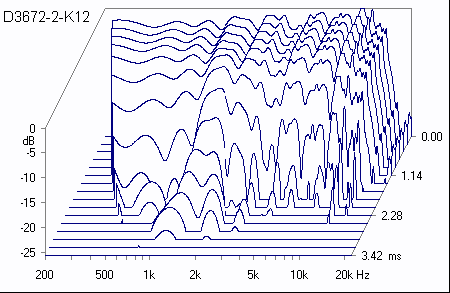 Important for excellent sound is the quick excursion of drivers shown in the following diagram as rapidly declining volume toward the front. This is successfully achieved.