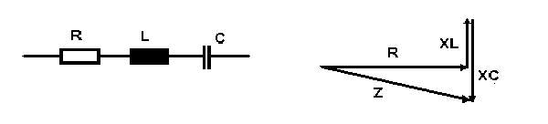 Für den Scheinwiderstand dieser Serienschaltung von drei Bauelementen R, L und C gilt die Formel: