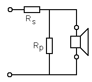Jedoch ist der Pegel des Hochtöners anzupassen. Er ist um 6 dB zu erhöhen. Dazu ist das Widerstandsnetzwerk um den Hochtöner anzupassen. In Bild unten sehen Sie Hochtöner und Widerstandsnetzwerk, links wie es mit einem Tieftöner (hoffentlich) ist, rechts wie es mit den zwei Tieftönern dann sein sollte. Geben Sie die Impedanz des Lautsprechers und die zwei Widerstande links ein und drücken Sie die Berechnen-Schaltfläche.